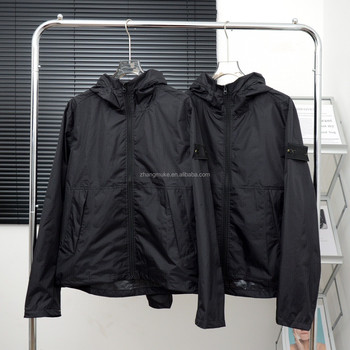 Vente en gros de vêtements unisexes de créateur coupe-vent à manches longues et fermeture éclair veste à capuche noire de marque pour hommes